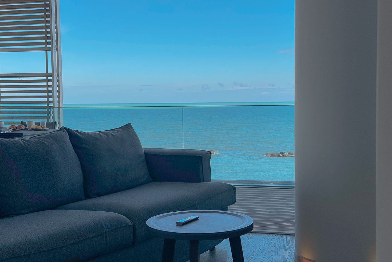 All'ingresso sarete accolti da un ampio soggiorno open space moderno e molto luminoso grazie alle grandi finestre che si affacciano sul mare. La cucina è completa di tutto l'occorrente essenziale. Un comodo divano letto nel soggiorno offre ulteriori opzioni per eventuali ospiti.
