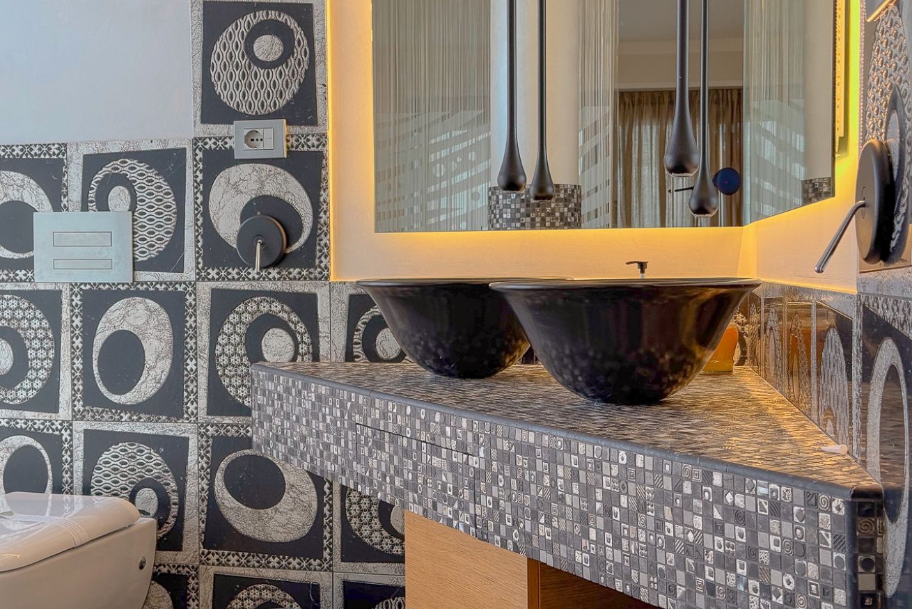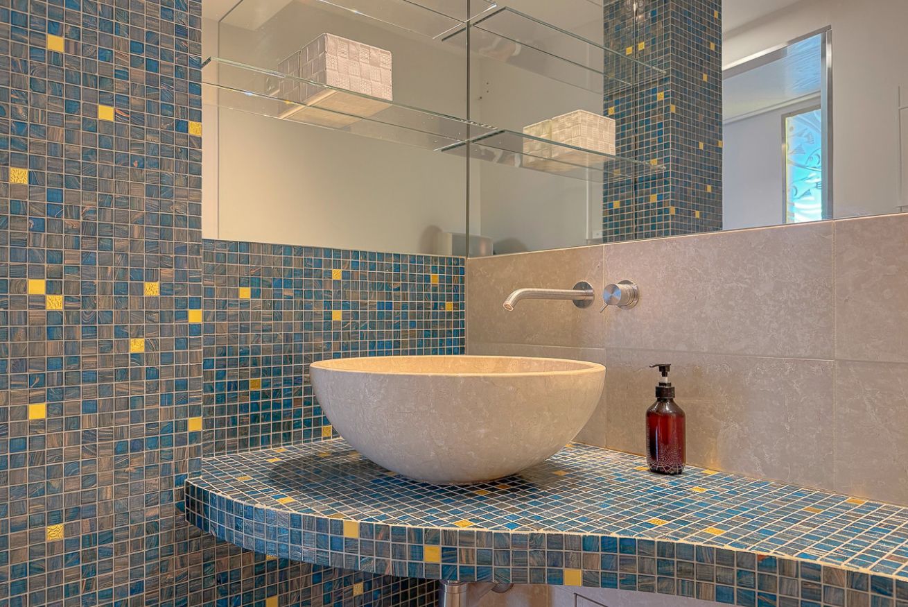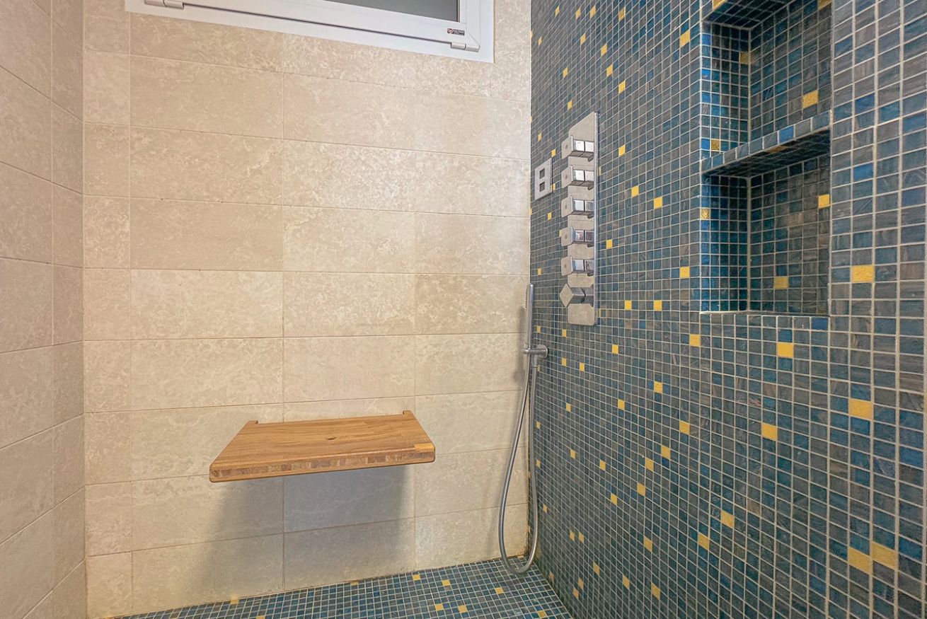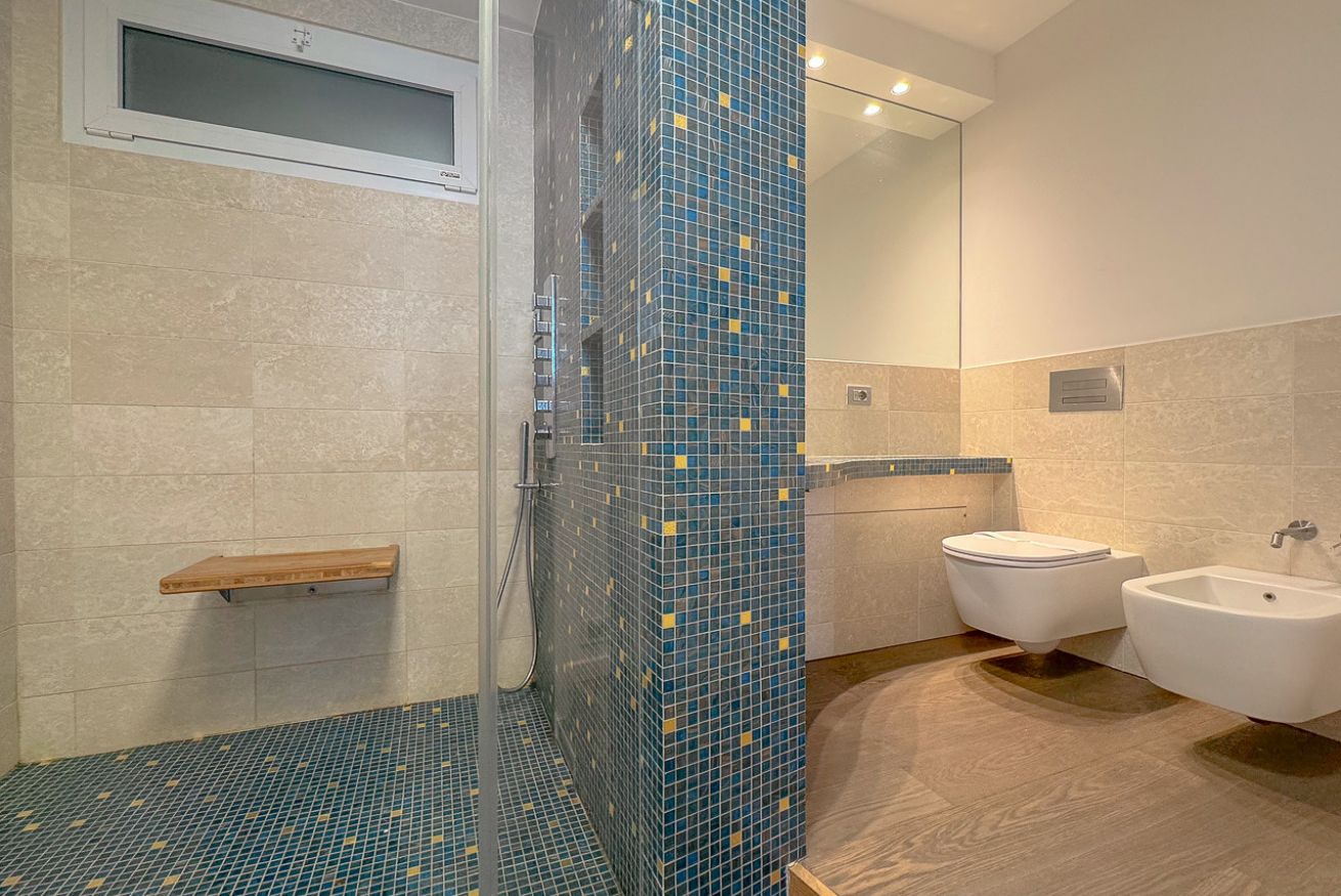 Il bagno principale gode di una doccia c multi getto con seduta e cromoterapia.