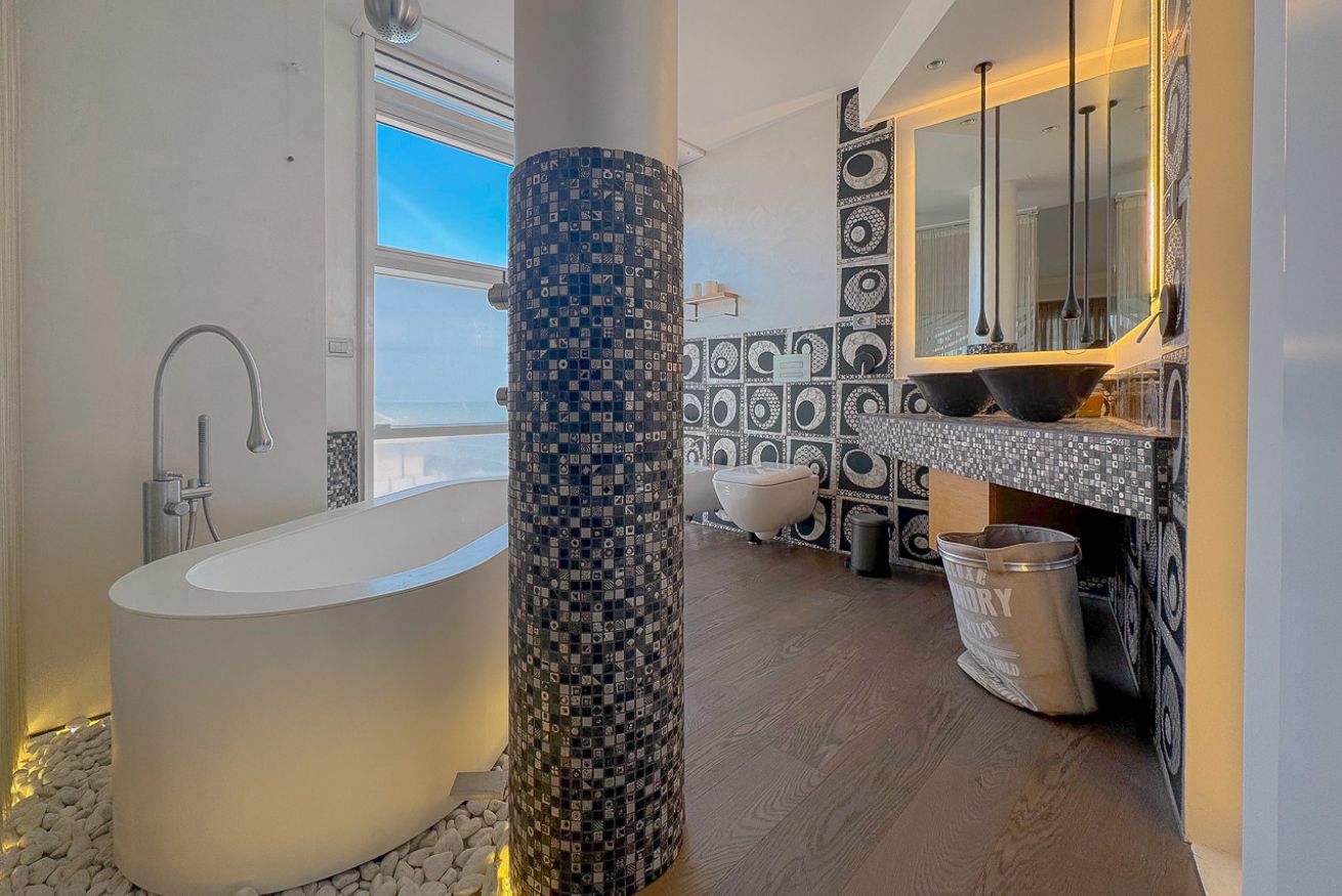 Con il suo design contemporaneo e le sue comodità di alto livello, questo appartamento è la scelta ideale per coloro che cercano un soggiorno di lusso e comfort in una posizione privilegiata fronte mare.