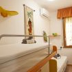Il bagno, dispone di cabina doccia, lavabo, wc, bidet e kit di cortesia con shampoo, bagno doccia, saponetta e cuffia per i capelli.