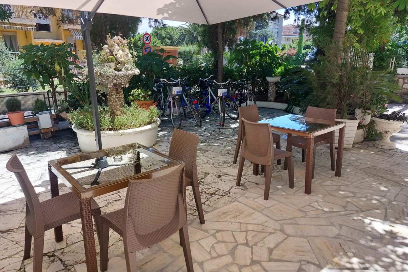 All’esterno, l’ampio giardino arredato è il vero plus: un angolo verde dove leggere, chiacchierare o fare colazione all’aperto. Per vivere al massimo la città e il lungomare, è disponibile anche il noleggio biciclette, pratico e divertente per raggiungere la costa in pochi minuti.