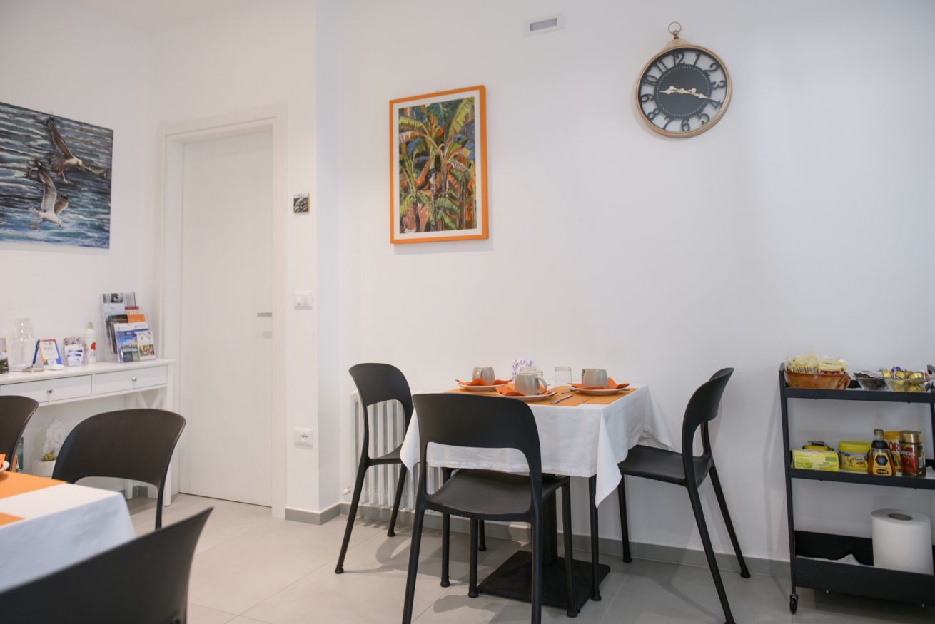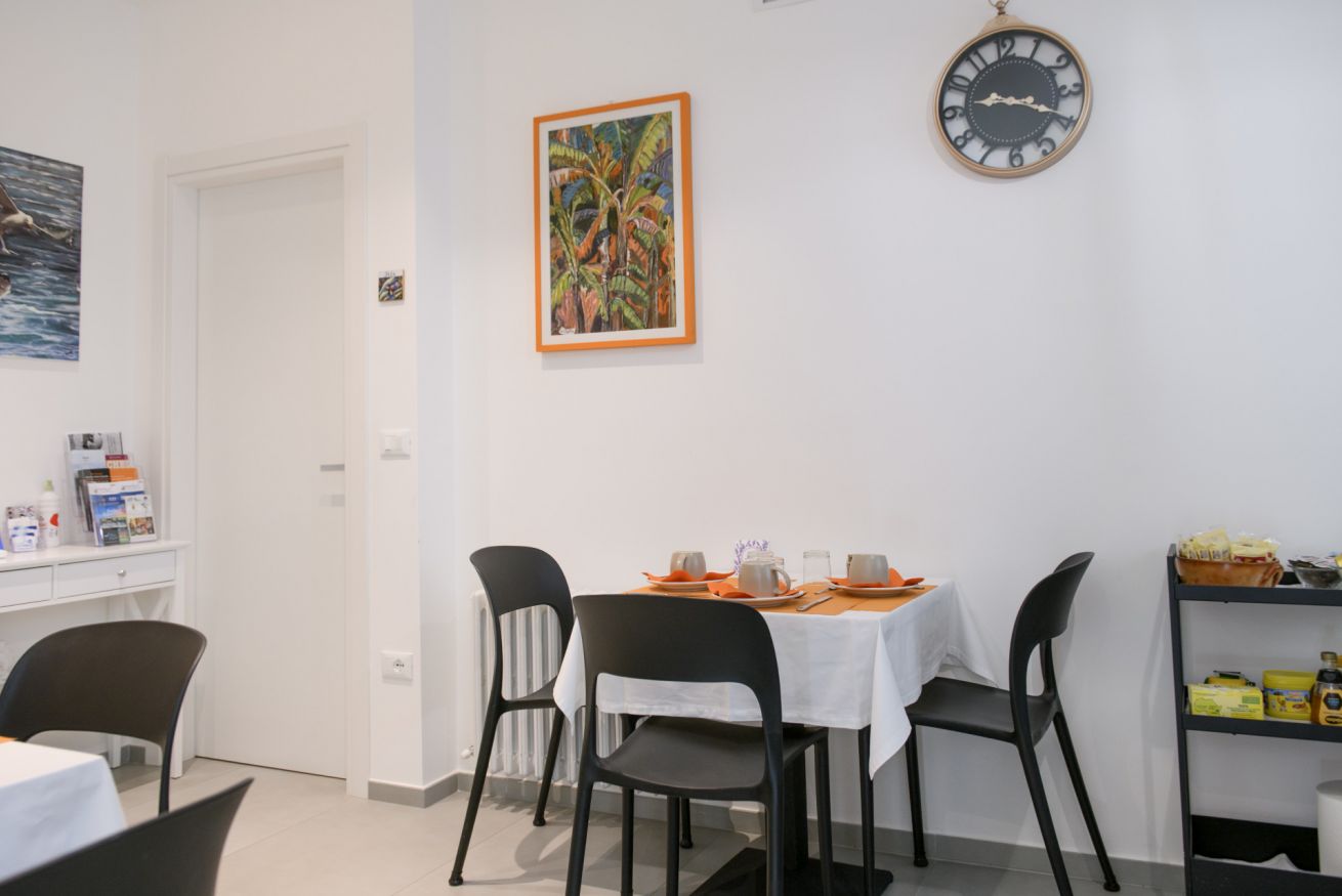 La colazione si svolge in una zona comune, affiancata da un salone condiviso: ambienti piacevoli e rilassanti dove iniziare la giornata con calma o concedersi una pausa al rientro. Gli ospiti potranno usufruire di una colazione base dolce, con una selezione di prodotti confezionati e freschi: cereali, yogurt, succhi di frutta, acqua, tisane, fette biscottate, marmellata, crema spalmabile alla nocciola e un dolce fresco del giorno, come crostata, ciambellone o similari.