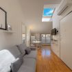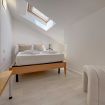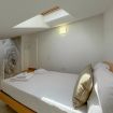 Camera secondaria in mansarda: spazio raccolto ma confortevole, perfetto per due ospiti grazie al letto matrimoniale e al lucernario che illumina l’ambiente.