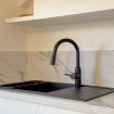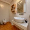Bagno elegante: dotato di doccia spaziosa, lavabo di design, asciugacapelli e tutti gli accessori essenziali.