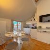 Zona giorno luminosa: appena entrati sarete accolti da un ambiente open space con divano, tavolo da pranzo e cucina attrezzata (forno, frigorifero, piano cottura, macchina del caffè, stoviglie e utensili).