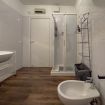 Bagno privato spazioso, dotato di doccia, bidet, asciugacapelli e set di asciugamani