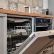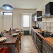 Al piano terra, troverete una cucina completamente attrezzata con elettrodomestici moderni, perfetta per preparare deliziosi pasti in compagnia. L'ampio tavolo da pranzo può ospitare comodamente tutti gli ospiti. L'area soggiorno, luminosa e accogliente, si affaccia su una zona relax esterna, ideale per rilassarsi all'aria aperta. Inoltre, a questo livello è disponibile un bagno completo per maggiore comodità.