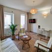 Salendo al primo piano, vi aspettano due eleganti camere da letto matrimoniali, ciascuna con bagno privato e smart TV. Una delle camere dispone anche di un grazioso balconcino, perfetto per gustare un caffè al mattino o un bicchiere di vino al tramonto.