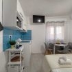 -Cucina-soggiorno, con comodo divano letto matrimoniale per rilassarsi o dormire.