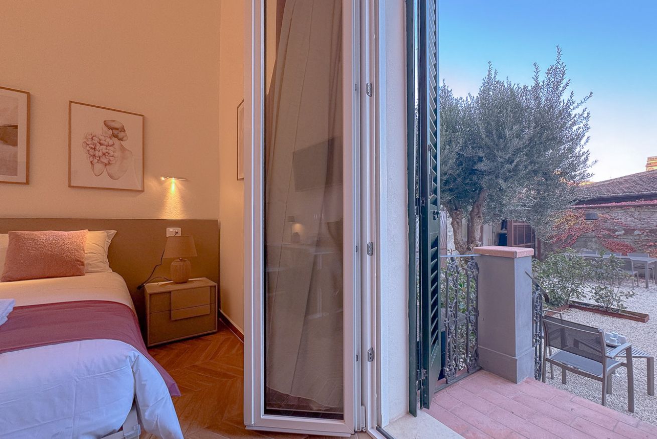 La camera può ospitare comodamente 2 persone. Gli interni sono curati in ogni dettaglio: toni caldi, materiali naturali e un design minimal ma raffinato. Dispone di un letto matrimoniale, postazione per tè e caffè, bagno con ampia doccia, aria condizionata, Wi-Fi e Smart TV. La vera chicca? L’accesso diretto al giardino privato con zona relax e pergolato.