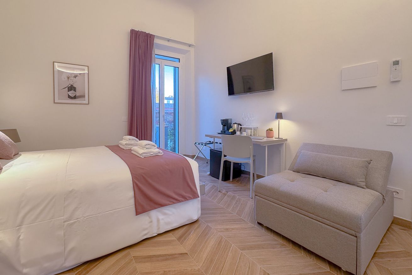 Un'elegante camera matrimoniale con bagno privato, immersa nel cuore di un quartiere autentico e tranquillo di Firenze. "In Corte" combina comfort moderni e charme toscano, a pochi minuti dal centro storico. Accesso diretto a una corte interna riservata, perfetta per colazioni all’aperto o momenti di relax. Wi-Fi veloce e Smart TV inclusi.