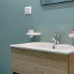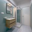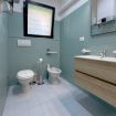 Bagno moderno con doccia spaziosa, bidet, lavabo doppio e lavatrice