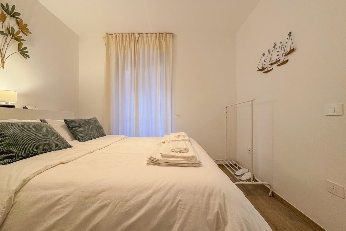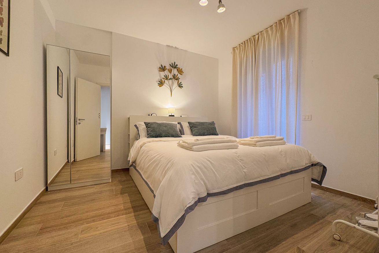 Una camera matrimoniale luminosa, con letto comodo e arredi essenziali e curati.