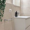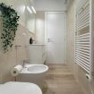 Bagno moderno con ampia doccia, bidet, asciugacapelli, lavatrice e set cortesia.