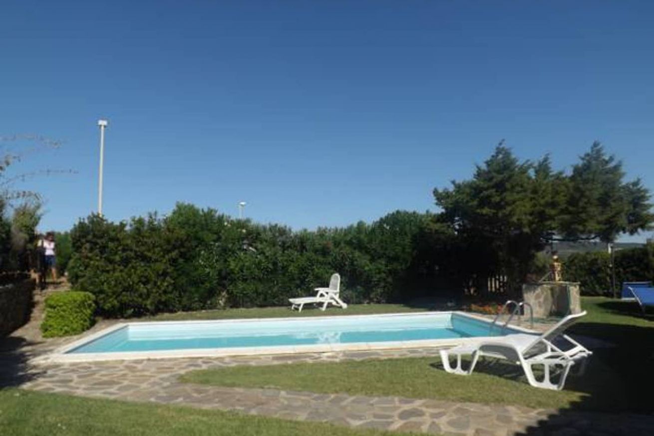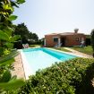 All'esterno, il vero fiore all'occhiello è lo spazio abitativo all'aperto: una veranda arredata con tavolo da pranzo esterno, perfetta per colazioni e cene all'aperto, un barbecue in muratura per grigliate con la famiglia e gli amici, un ampio giardino con zone ombreggiate e un parcheggio privato all'interno della proprietà. La piscina privata completa l'esperienza, ideale per rilassarsi in totale tranquillità.