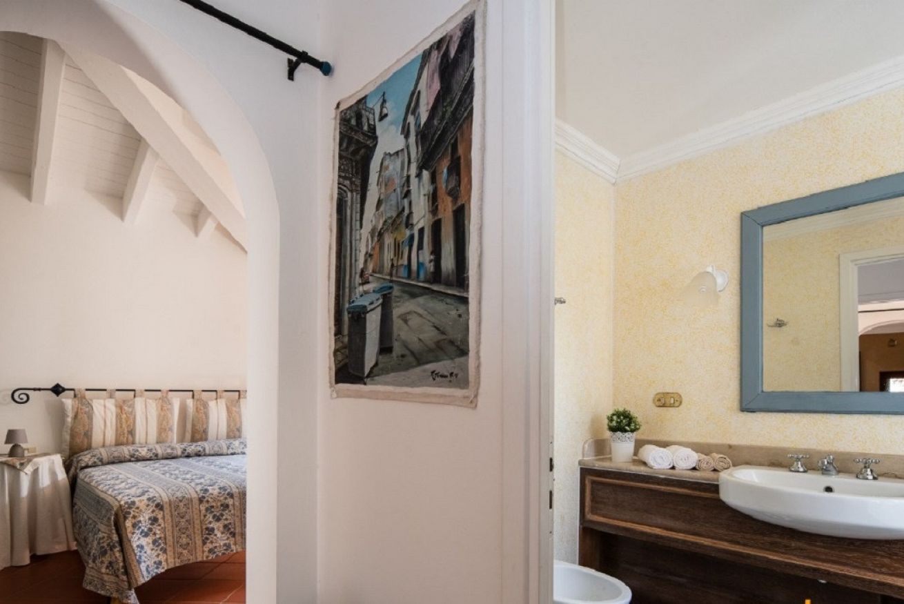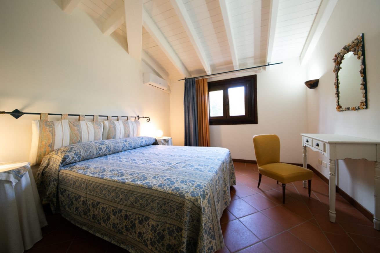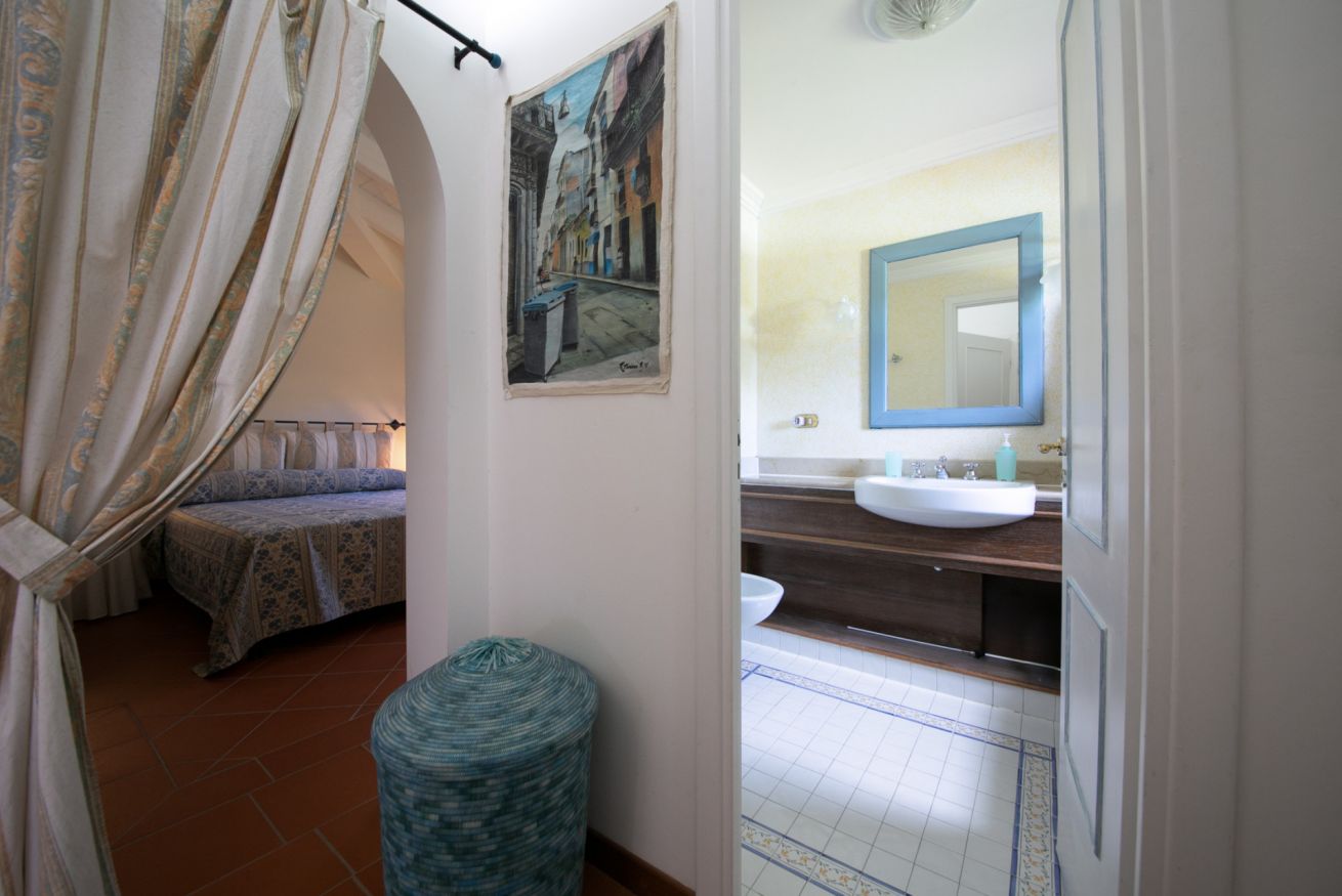 La zona notte offre 2 camere da letto: una matrimoniale e una doppia con due letti singoli. La villa comprende anche 2 bagni completi (uno con doccia e uno con vasca), Wi-Fi e aria condizionata nelle camere da letto per il massimo comfort anche nelle giornate più calde.